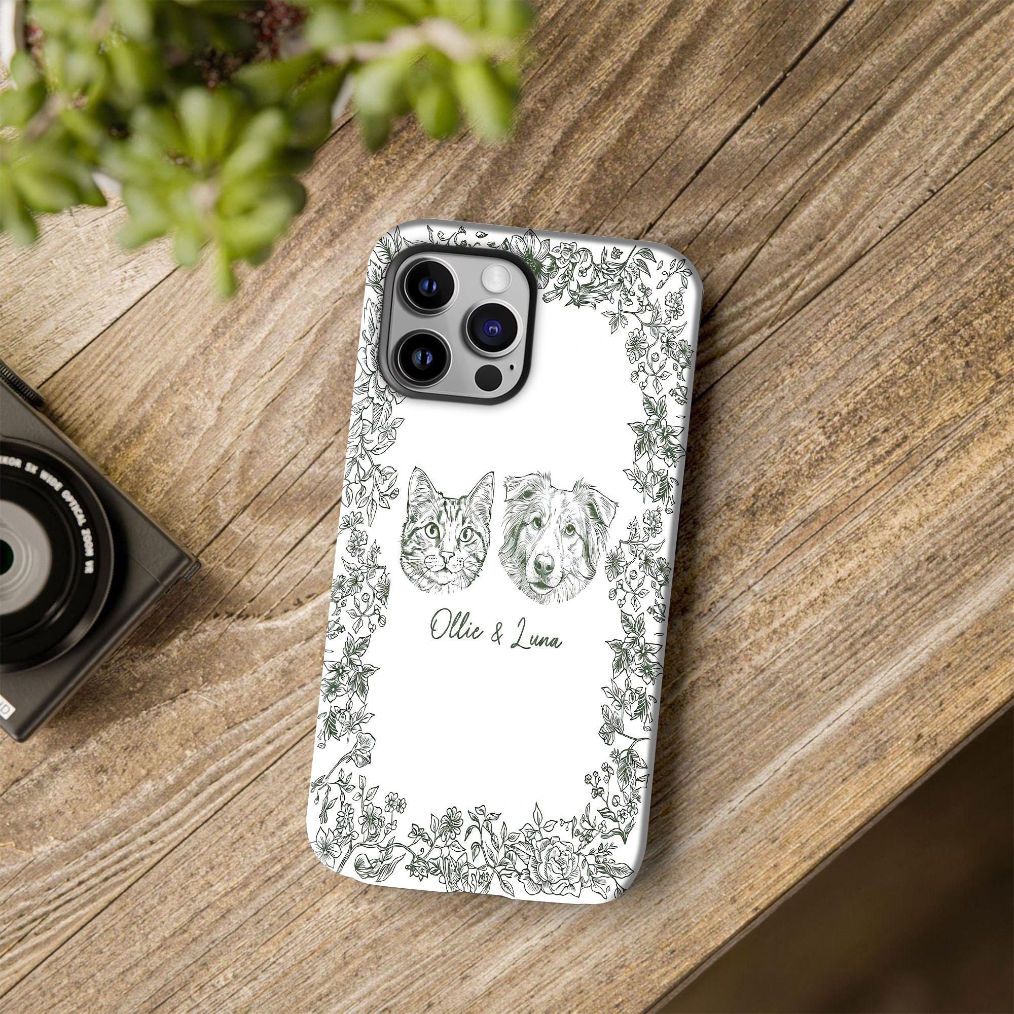 Custom Pet Photo Toile De Jouy Phone Case, Dog Cat Mom Gift, Personalized Dog Cat Mom Gift, Pet Lover Gift, Dish Toile De Jouy Pet PhoneCase